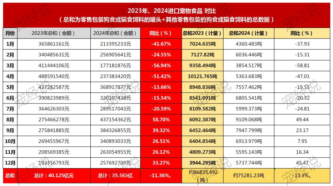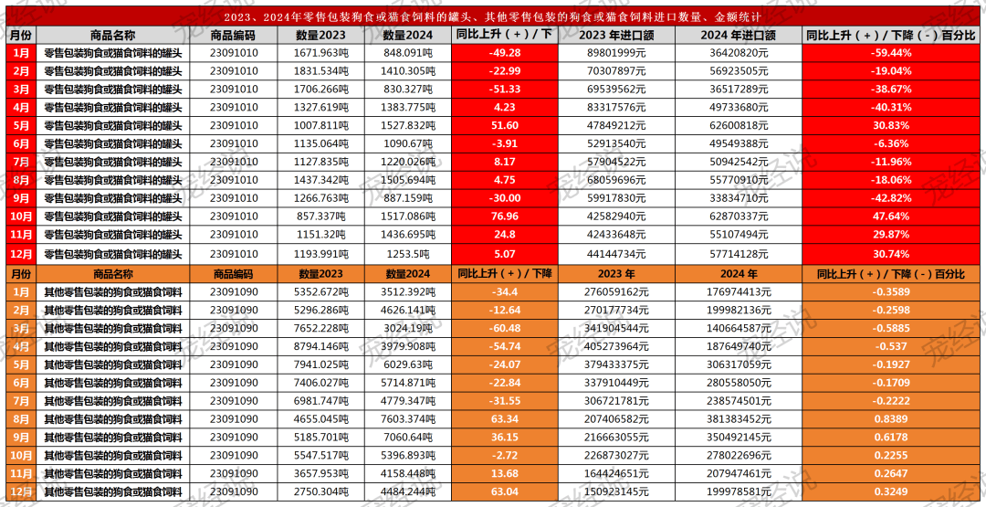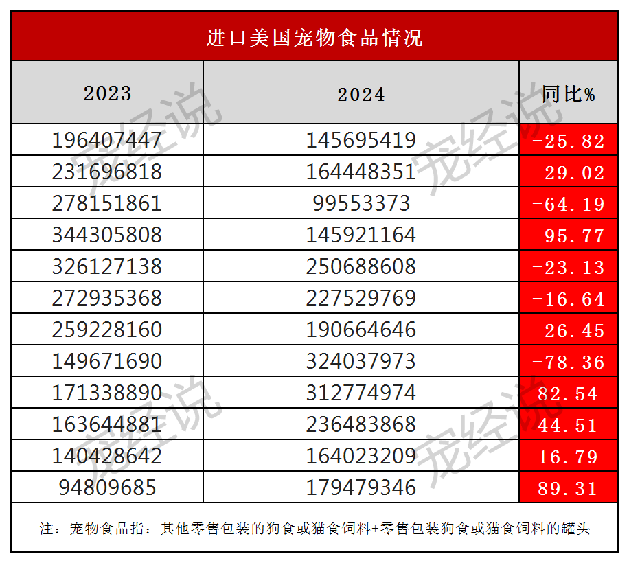 近日,宠经说拾掇了海关总署最新的宠物产物进口数据,2024年的12个月,有7个月进口总值都呈下滑趋向,正在进口金额上则同比2023年下降了4。56014183亿。再次被选美国总统的唐纳德·特朗普还公开颁布发表,沉启对中国的“商业和”,这也为中国宠物产物的进出口商业再次蒙上一层阴霾。